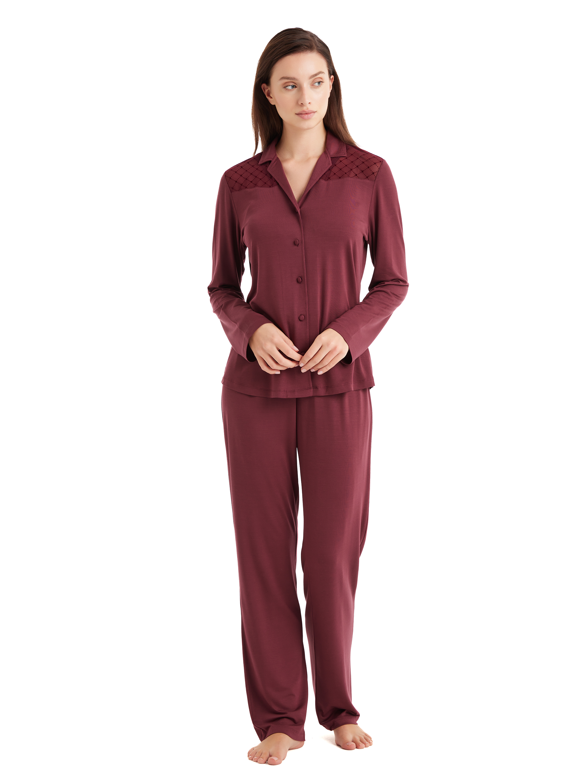 Sürdürülebilir kumaşlar: Çevre dostu üretimle elde edilen kumaşlar. İpeksi yumuşaklık: Cildinize nazik dokunuş sunar. Nefes alabilirlik: Gün boyu ferah bir his sağlar. Mükemmel uyum: Vücuda oturan rahat kalıplar. Şıklık ve konfor: Evde zarafeti ve rahatlığı bir arada yaşayın.